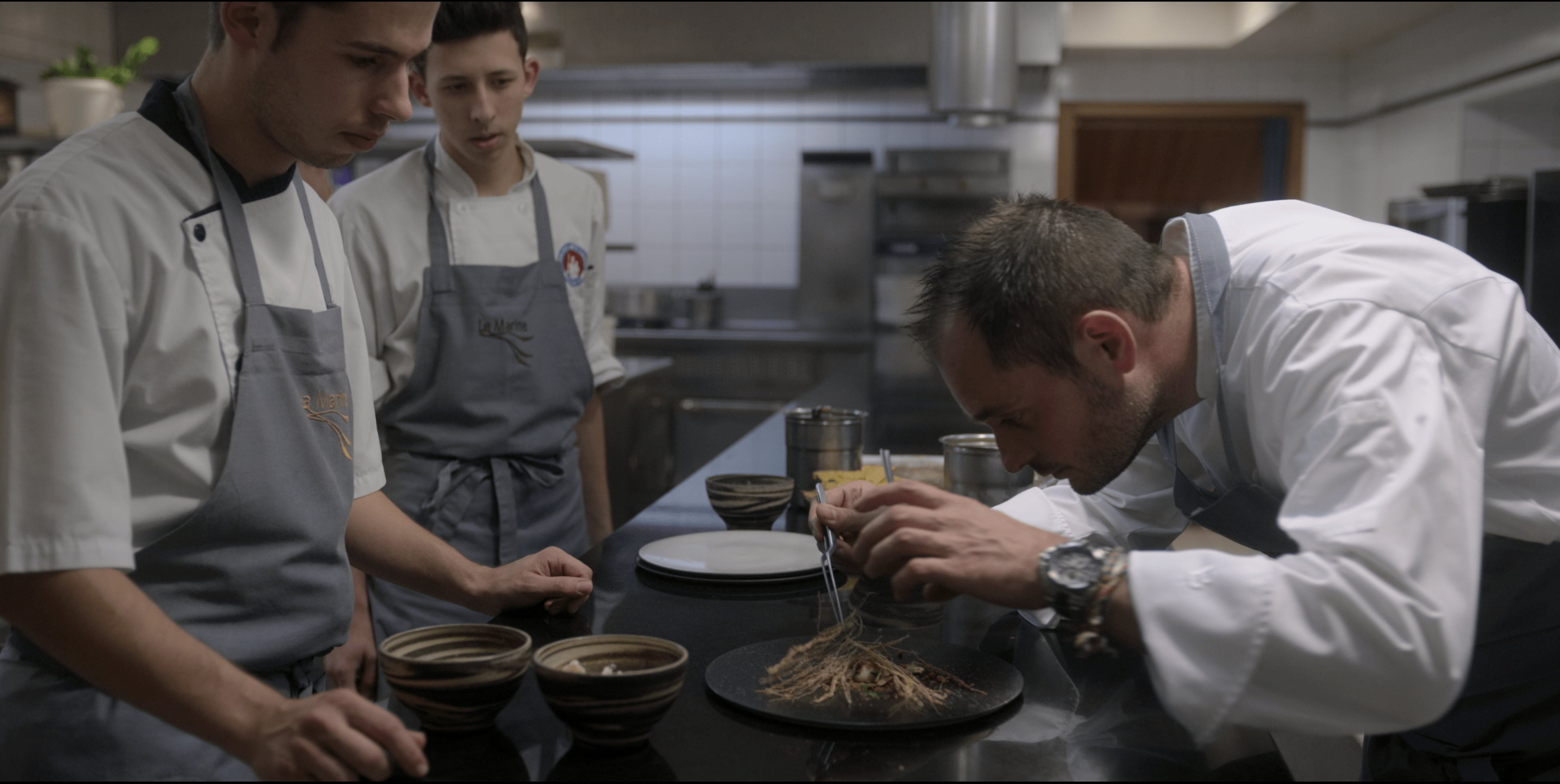 Dans la célèbre série documentaire Chef’s Table, quatre épisodes ont été consacrés à des chefs et cheffes français au talent exceptionnel. Parmi eux, Alexandre Couillon et son restaurant La Marine, qu’il tient avec sa femme Céline à Noirmoutier-en-l’île (Vendée). Depuis son ouverture en 1999, un établissement hérité de ses parents, le chef a son rituel : chaque matin, à l’aube, il va choisir son poisson au port, et ses légumes dans son propre potager. Avec ces aliments de territoire, il propose une cuisine “marine et végétale”, soucieuse de son environnement.