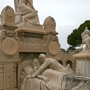 Inauguré en 1863, le cimetière Saint-Pierre est le troisième plus grand de France et compte près de 100 000 tombes. Dans ce musée à ciel ouvert, on peut croiser les sépultures de grands noms tels qu’Antonin Artaud, Edmond Rostand ou encore Henri Verneuil et Gaston Deferre. Parmi les nombreux tombeaux majestueux à admirer au milieu des pinèdes, ne ratez pas celui de la famille Lains, orné d’une impressionnante sculpture romantique signée Buselli, qui représente une femme embrassée par son mari sur son lit de mort…